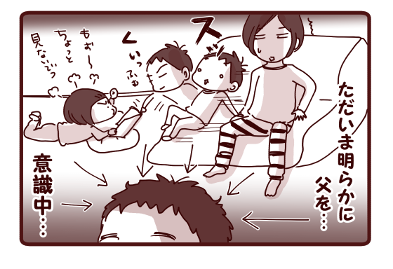 最近はたまにしか帰らない旦那に、次男と三男がまとわりついてずっとゴロニャンしてます(゜ロ゜;ノ)ノ(←父子に放置される母)