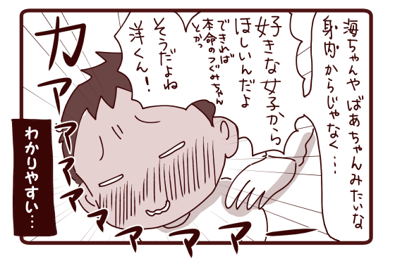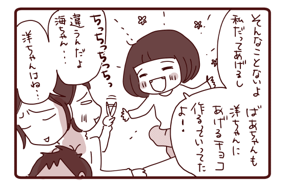 そうかぁ、もう好きな女の子からもらいたいとか言い始めるなんて・・洋くん、あっという間に大人の階段登ってるね。