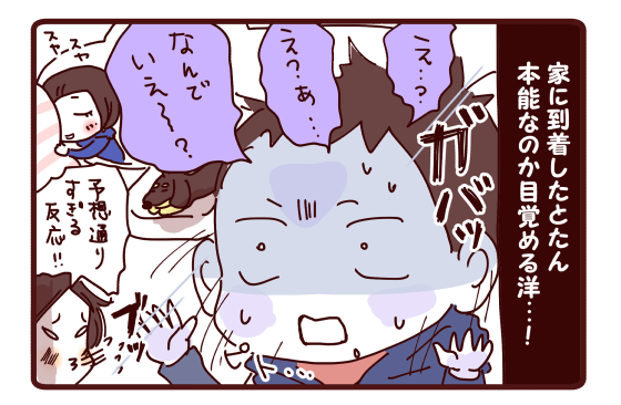 なんでしょう…洋って、こういう時になぜか目が覚める!(置いてかれるとでも思うんでしょうか、本能で)