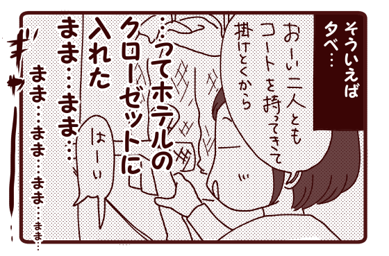 ホントに、次回からホテルのクローゼットは開けっ放しにしたいと思います、ハイ。