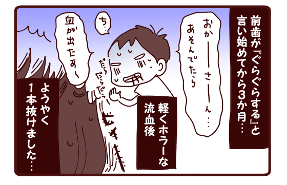 私も最初の1~2本は抜けた記憶があるけど、『全部抜けたっけ…?』っていうぐらいその後の記憶がない。これから海と洋もどんどん抜けていくんだよなぁって、この年頃特有のドキドキ感ありますね~(*´▽`*)でも、流血はやめてほしい!笑