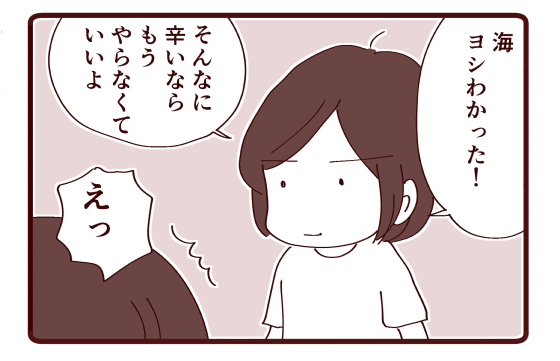 今の状態でこれ以上やっても海の苦痛は増えるばかりだと判断して、もうすっぱり辞めることを提案しました。