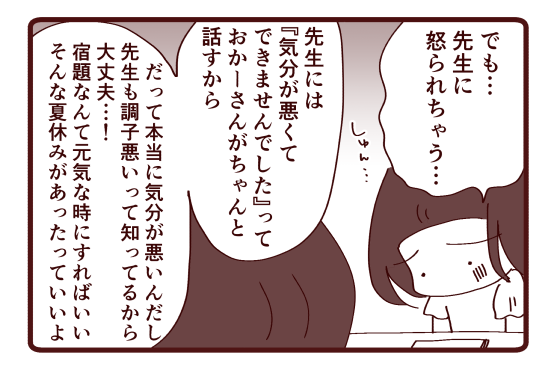 「勉強は元気な時にすればいい。具合が悪い時は休む、これ大事。」