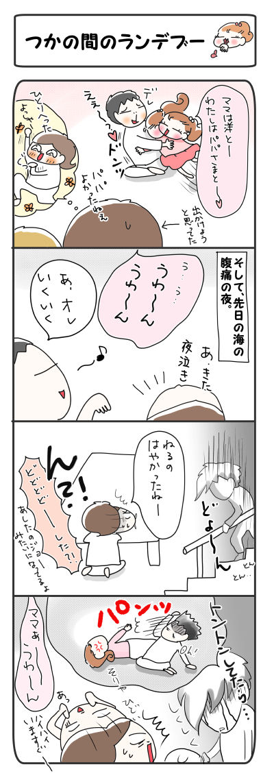 つかの間のランデブー【4コマ】 2014年11月28日 ただいま、双子の間で母が大流行しており、ダンナという生き物の切なさをひしひしと感じておりましたが…突如、ソレは来ました!ついに、ダンナ、モテ期、到来!!ヒューヒューただし、海、限定。私も、一人ダンナに割り当てることができて楽チンになるわ、ダンナも「オレの時代来 ... 続きを読む