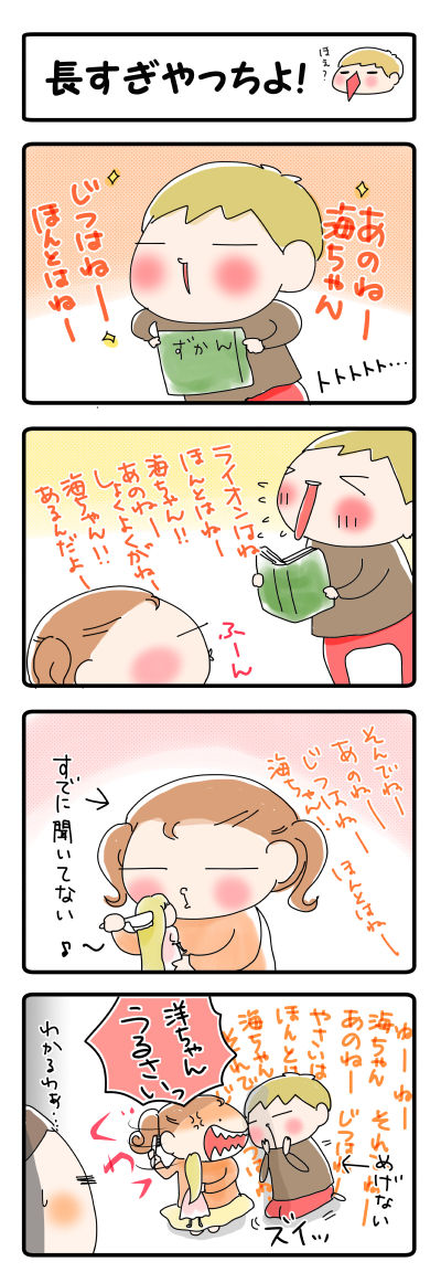 長すぎやっちよ!【4コマ】 2015年01月17日 前記事では、励ましやら同情の声、(や、おもしろがる声…笑)いい方へとってたくましく生きていきやすっ。だが、もうちっとしっかりせんと(キリッ!)! なんせ、アラフォーだしのぉ~。と思う今日この頃デス。洋はおしゃべり大好き男。そのおしゃべりがまた…本題どんぞ。 ... 続きを読む