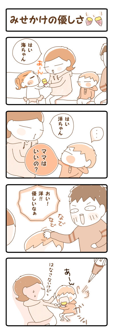 みせかけの優しさ【4コマ】+ヒヨコ村 2015年01月19日 お出かけ先で石焼芋のおいしそうな匂い!たまら~~~ん!!ということで、買っちゃいました。本題どぞ♪ 見せかけだけの優しさはいらん!!くららんち。in B型夫婦のくららさんちで開催中、『妄想★ヒヨコ村』で、ついに私に『敵の懐に飛び込んで一撃食らわせろ』との指令 ... 続きを読む