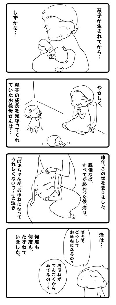 ありがとう(後) 2015年05月31日 ママブロネタ「日々のできごと」からの投稿これまでの経緯はコチラから⇒ ☆海&洋を授かってから、その後の出来事です。お義母さんとのことはコチラから治療その後②○●○●○●○●○● ○●○●○●○●○●私は…お義母さんが、いつものように「あら、よく来たわねぇ」 ... 続きを読む