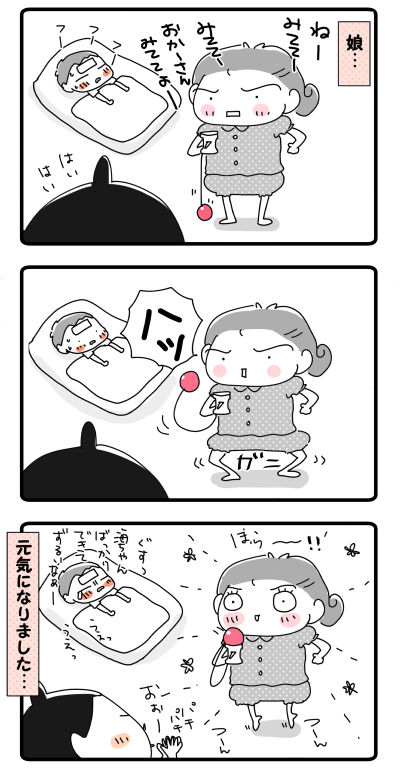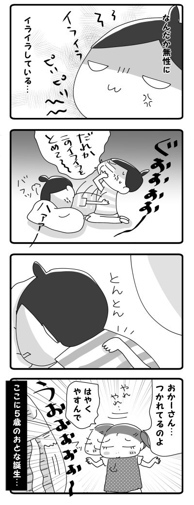 娘の神対応【4コマ】 2015年07月05日 ママブロネタ「日々のできごと」からの投稿大雨続きなのもありつつ、お月のものがお近づきになると、こういう日が増えて… おとなっ!おとなですぅ~!!でも5歳のおとな女子の神対応に頼り切ってばかりではいけない!と思い、ついに体質改造の本を買いました。読むどー! ... 続きを読む