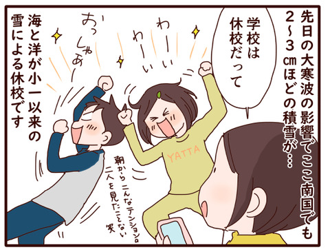 あの『大寒波』の時の双子 2023年01月30日 ようこそおじゃったもんせ♪読みに来てくださってありがとうございます😊登場人物母 かよポン(作者)基本めんどくさがり。天然ボケ発言多しの50歳主婦。父 父ポン普段は家族を優しく包むが、母の天然ボケ発言には容赦ない。ただいま単身赴任3年目。双子姉 海喜怒哀楽がわ ... 続きを読む