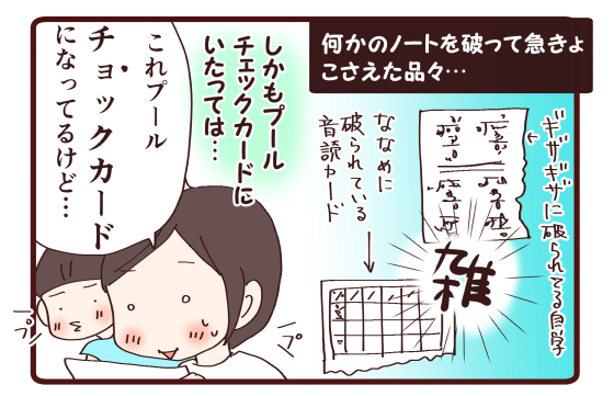 わたしだったら、ついイライラしてどこにノートやったのー?とか、こんなんじゃ先生に笑われちゃうよ💢とか…