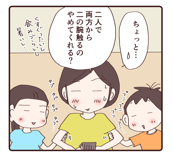 ウチの末っ子(時々、次男)も、隙あらば母の二の腕タプタプ&モミモミしに来ます。
