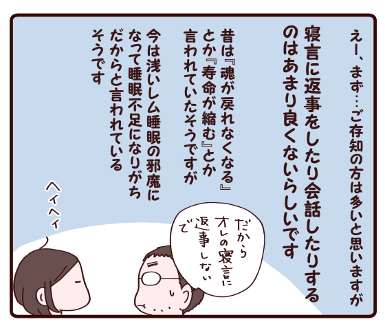 私、旦那の寝言(昼寝中)に返事しまくってるわ(〃ω〃)