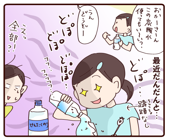 洋くんがお風呂で1.5Lコーラにメントス入れてるのが