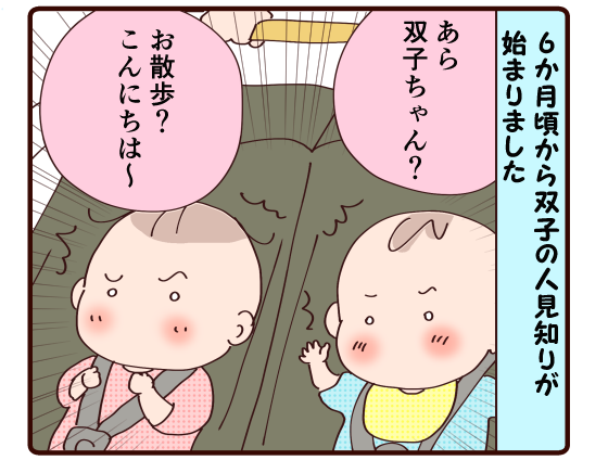 人見知りは悪いことじゃないとはわかっていても、人とすれ違うだけで大泣き(しかもダブルで)してしまう双子を抱えて出かけることさえも億劫になっっている自分がいました。