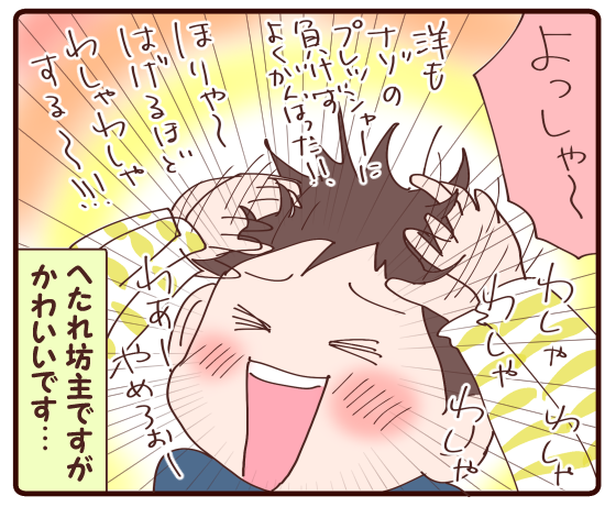 頑張ったときは、ギューッとワシャワシャだよね~、最高のご褒美だ、子供達にもかよポンさんにも ヾ(´︶`*)ノ♬