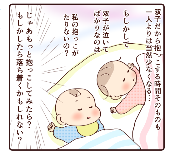 それは自分を見つめ直すには良かったかもしれないけれど、この睡眠不足で疲労困憊の自分と、自己主張が出始めた双子と一緒、という環境では行き詰まり始めていました。