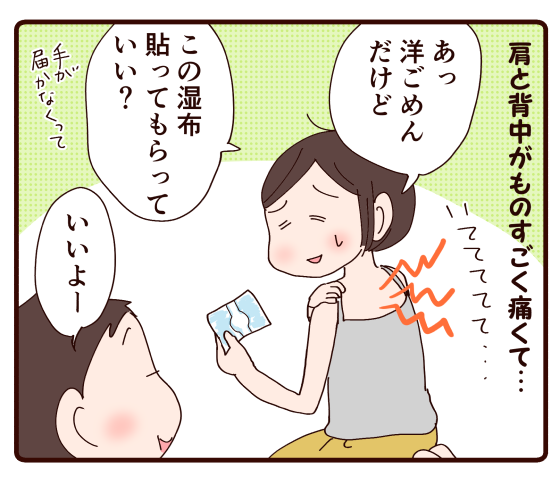 同じ~(笑)現在の、仕事柄、毎日湿布張りして貰ってるのですが、背中、腰同じく届かない(笑)