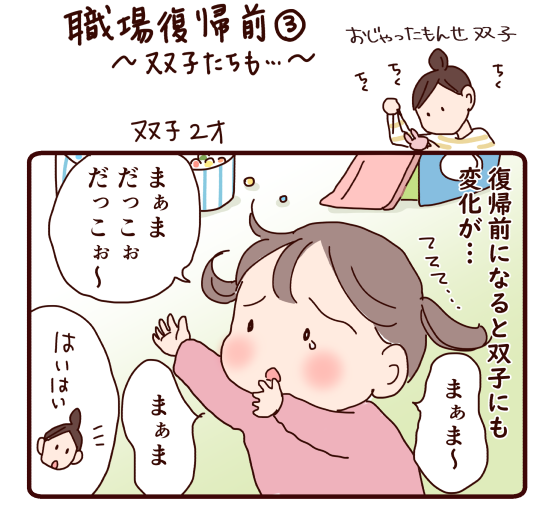 復帰前になると双子がぐずって抱っこをせがむことが増えていました。