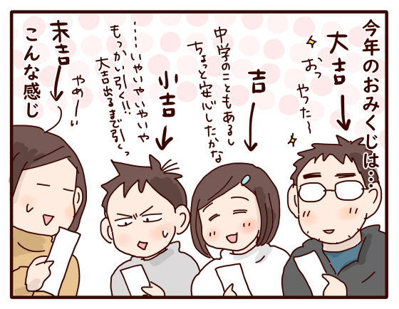 年末年始は、パパさんとこで家族揃って楽しめたご様子。みんな「吉」だから、めっちゃ良いですね!