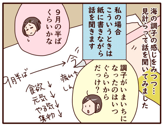話を聞くときに紙に書きながら進めると、双方目で見てわかりやすいし、話も整理しやすくなるので、大事な話をするときはおすすめです(*´ω`*)