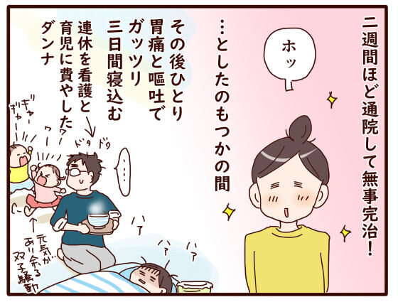 パパさん居てくれて良かったですね。看病と子育て…大変さがわかったかな?