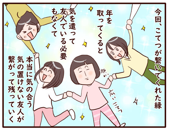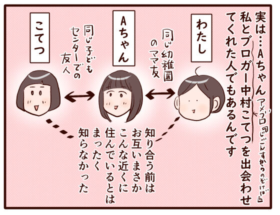 Aちゃんとは幼稚園のママ友という関係からスタートしたんですが、そこを越えてなんでも話せるお友達となり、そこから、こてっちゃんやRちゃんとも縁が繋がっていきました。