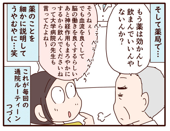 この『病院いかん』と『薬飲まん』とごねるのに対して、最初のうちは私も母も真剣に説得してたんです。