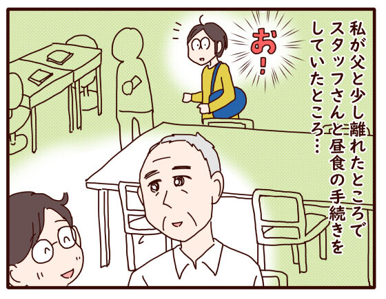 そんなとき、私がスタッフさんに昼食のことをお願いしに行った際、ふと父の方を見ると、スタッフさんと何かお話している父の姿が…!😳✨