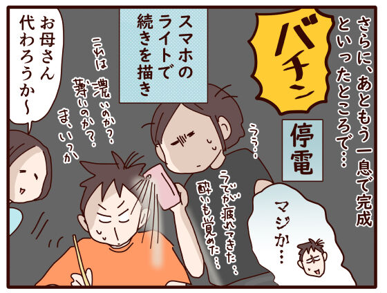 ただ色塗るだけ(下塗りはしてあったので後は描き込み)が、なぜかドタバタ劇に…😂