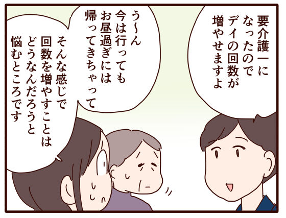 実は前のケアマネさんにはデイと契約した後はほぼほぼ話すこともなく、相談とか提案とかも特にない感じでした(私がデイのスタッフさんに直接相談できてたので、ケアマネさんにはあまり相談する必要性を感じなかったのもあります)。