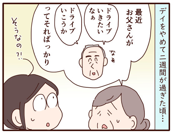 父の気分転換を叶えてあげたい(もしくはもう断るのがめんどくさいとか…?)という母の気持ちはわからないでもないんですが、そもそも運転だって危ないし、疲れも蓄積するし、本当にやめてほしい…なかなかそんな思いが届かず本当にガックリきます。