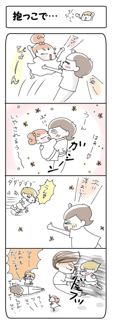 抱っこで…【4コマ】 2014年11月01日 4歳ジンを抱っこするのって、0~2歳までの抱っこするのと、また違った癒しがありますよぉ~♡重いですけど…では、本題どぞ。 キミッて人は…キミッて人は…!!ぐぉほっぐぉほっでも、このむぎゅ~感に、ほっぺむにむに感と、子ども特有のふんわりしたにほい(洋は、 ... 続きを読む