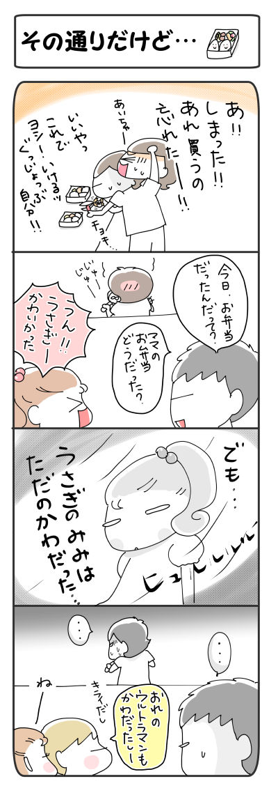 その通りだけど…【4コマ】 2014年10月17日 お弁当、すごく美味しそうで可愛いキャラ弁とかを作れるお母さんに憧れます。。。。さて、本題どそ… えぇ…皮です。たしかに。なんのって…トマトの…あぁ!二人ともトマト苦手なのは知ってたさ!だってだって、赤色買うの忘れたのに、洋が前日の夜になって突然、「おれ ... 続きを読む